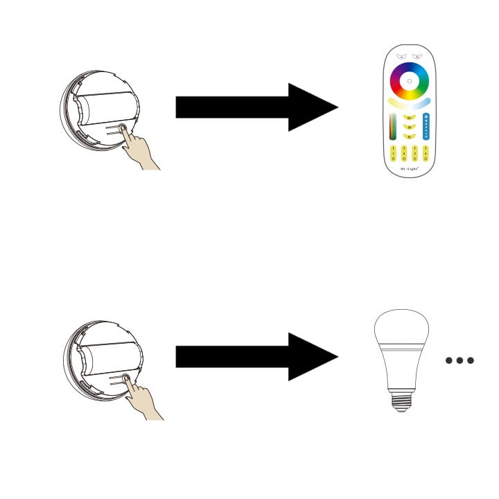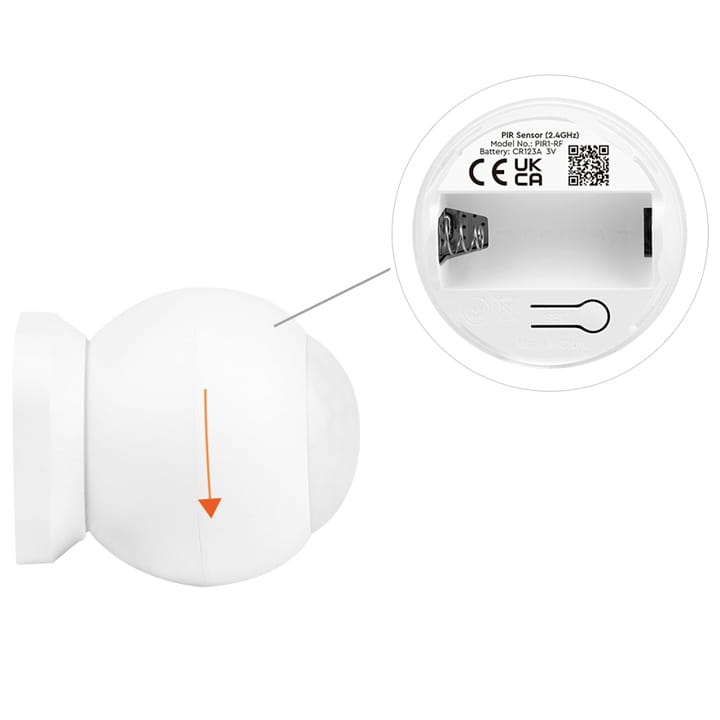 Czujka na ruch MiBoxer PIR1-RF zasilana baterią CR123A 3VDC, pozwala montaż czujnika w dowolnym miejscu, bez wymaganego podłączenia do przewodów. Czujnik ruchu łączy się radiowo ze sterownikami, żarówkami i lampami MiBoxer, więc nie wymaga podłączenia przewodów z czujki do urządzeń.