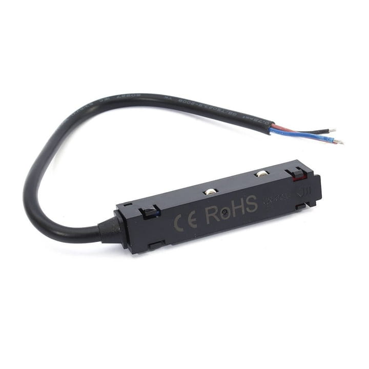 Łącznik zasilający, pozwala podpiąć zasilanie z zasilacza zewnętrznego 48V, do szyny oświetleniowej magnetycznej.