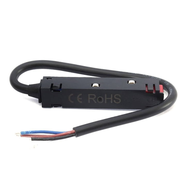 Łącznik zasilający jednostronny z przewodem do szyn oświetleniowych magnetycznych czarnych na napięcie 48V.