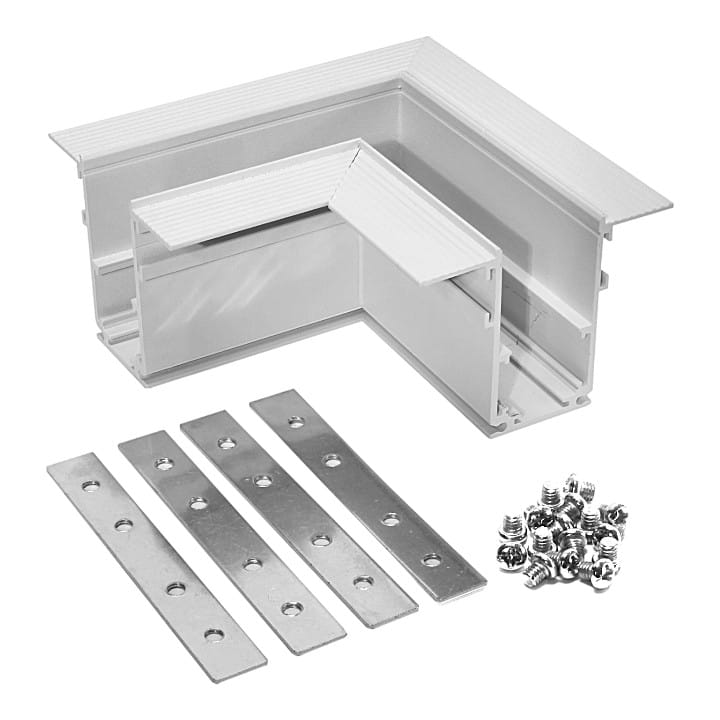 Metalowy łącznik kątowy do szyny magnetycznej białej podtynkowej typu SMT02.