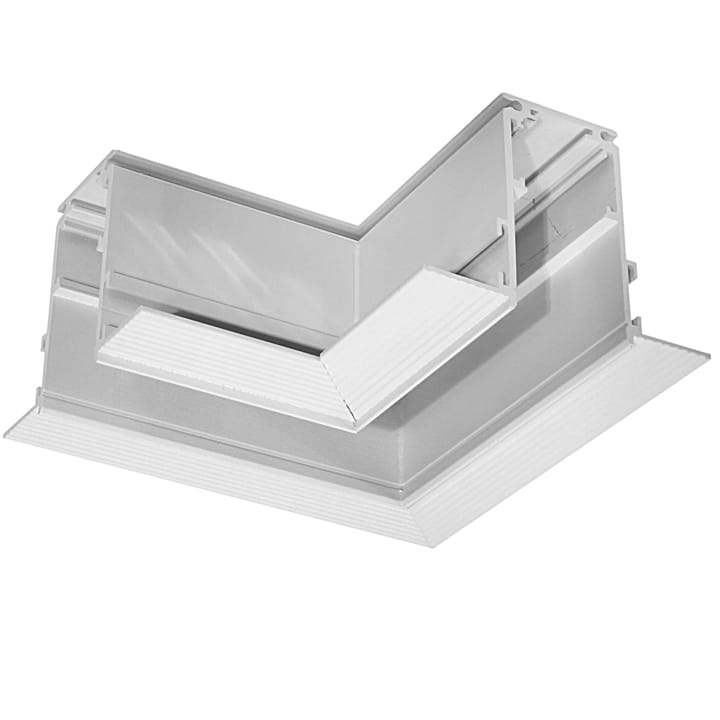 Szyna kątowa magnetyczna podtynkowa SMT02, to szyna łącząca ze sobą pod kątem 90 stopni, szyny podtynkowe magnetyczne SMT02. Łącznik pozwala na budowę i połączenie oświetlenia szynowego Magnetic Track Light w kształcie litery L, oświetlenia w kształcie litery U, lub oświetlenia w kształcie zamkniętego kwadrata lub prostokąta.