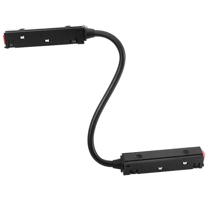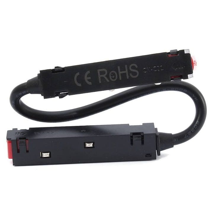 Łącznik zasilający kątowy dwustronny z przewodem do szyn oświetleniowych magnetycznych czarnych na napięcie 48V.