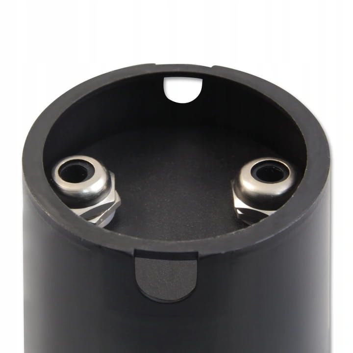 Przednia obudowa lampy najazdowej srebrna ze stali nierdzewnej, oraz klosz szkło hartowane. Korpus obudowy wykonany ze mocnego grubego plastiku. Oprawa posiada mufy dławiki przyłączeniowe na przewody o przekroju minimalnym 3x0.75mm².