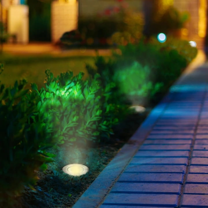 Lampa okrągła oprawa wpuszczana w podjazd lub wpuszczana w grunt do podświetlenia drzew, do podświetlenia krzewów i roślin.