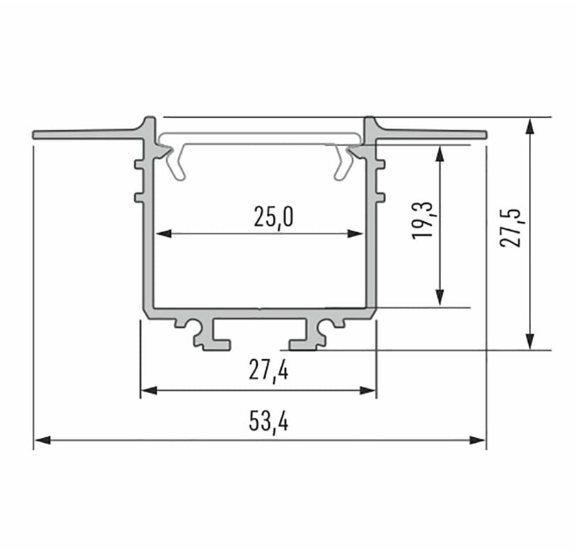Model PP-SB to listwa pod ledy, która po wpuszczeniu i zatynkowaniu ma niewidoczne boczne ranty. Profil został wykonany z mocnego aluminium, który posiada dodatkowe wypustki pod tynk oraz dodatkowo posiada mocowanie pod sprężyny montażowe, które ułatwiają montaż profilu w podwieszanym suficie GK.