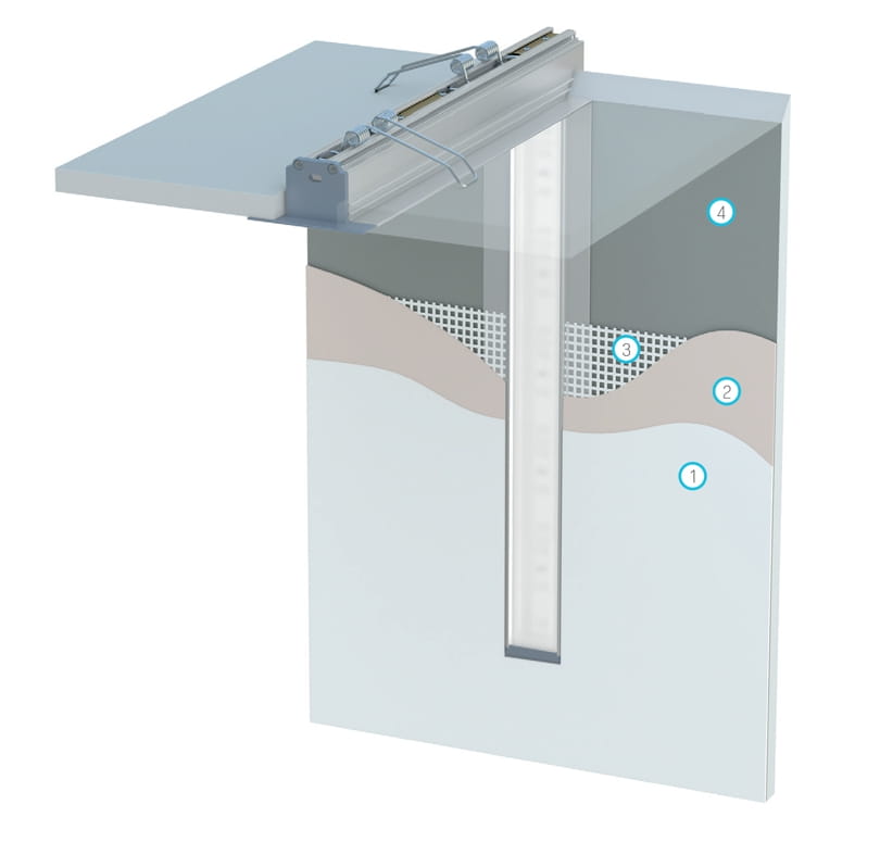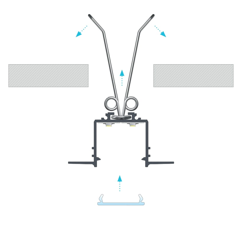 Profil po zatynkowaniu w suficie lub w elewacji, jest na równo licowany z powierzchnią, bez widocznych dodatkowych elementów zewnętrznych.