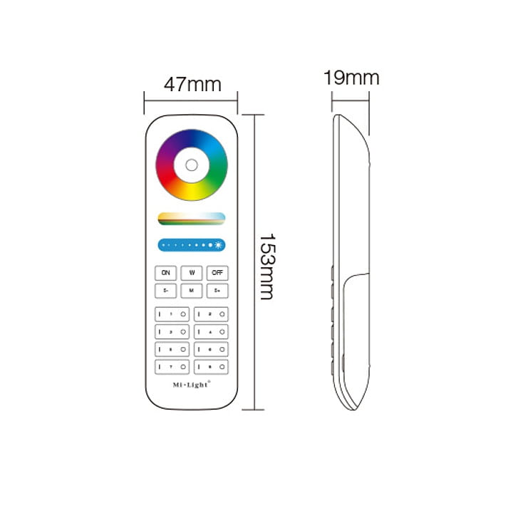 Komunikacja pilota, z odbiornikami FUT MiBoxer, odbywa się drogą radiową 2.4Ghz. Pilot zasilany na dwie baterie AAA, co pozwala na zmontowanie panela sterującego B4 w dowolnym miejscu. Sterownie pilotem dotykowe.
