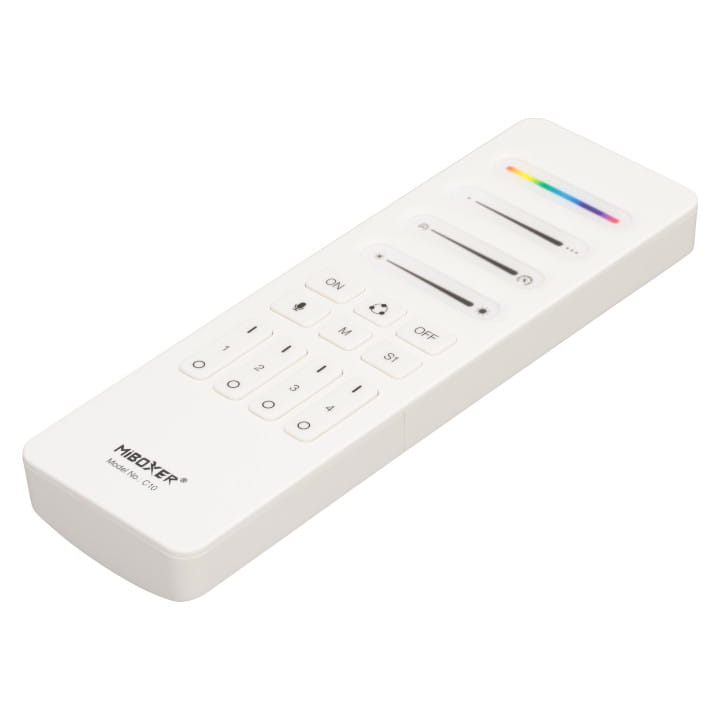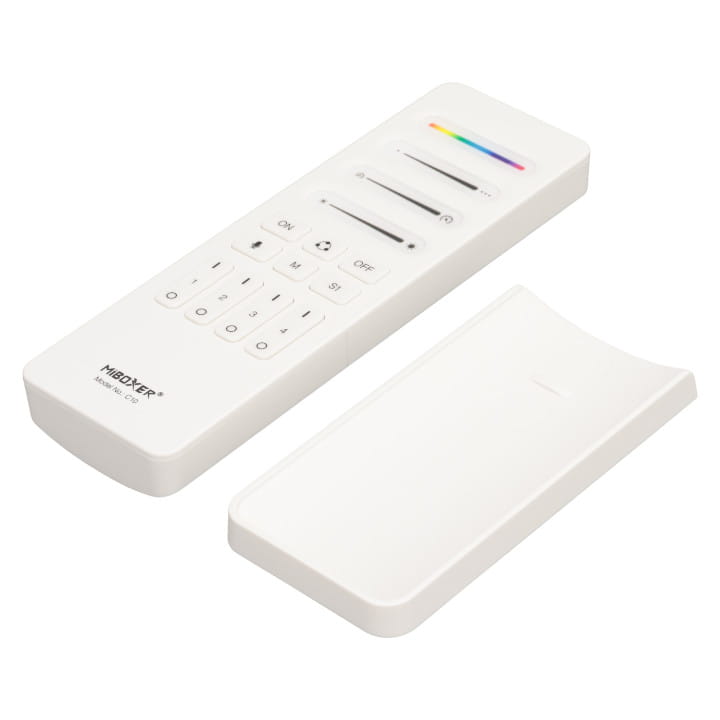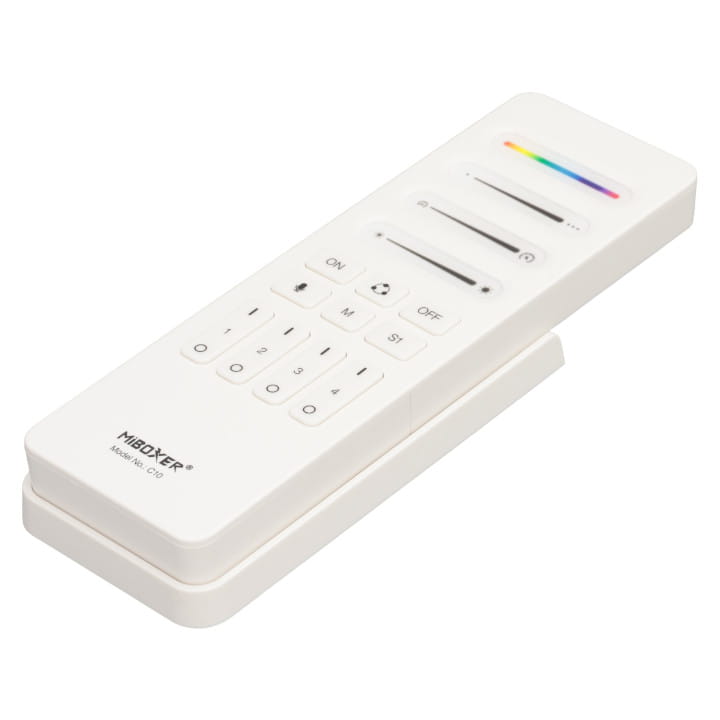 Pilot C6 umożliwia zdalne sterowanie jedną strefą oświetlenia taśm cyfrowych LED. Komunikacja radiowa pilota z odbiornikami umożliwia płynne i bezproblemowe sterowanie kontrolerami SPI MiBoxer bez zakłóceń i bez konieczności celowania pilotem w stronę odbiornika.