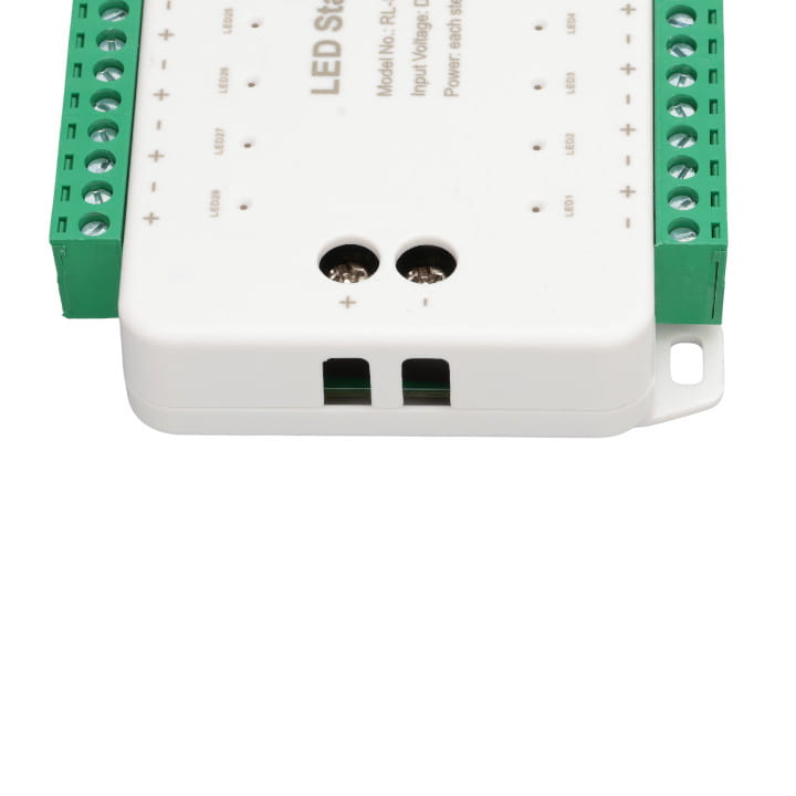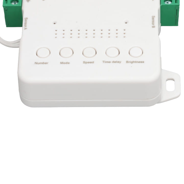 Sterownik kaskadowy z możliwością ustawienia 10 poziomów prędkości załączania światła LED. Posiada zakres regulacji ustawienia czasu w 10 pozycjach czasowych oraz posiada możliwość ustawienia 4 poziomów jasności światła LED.