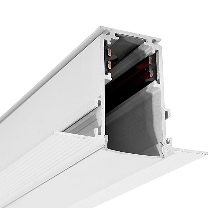 Biała podtynkowa szyna oświetleniowa magnetyczna 200cm do zabudowy sufitowej GK do szpachlowania. Szyna na lampy Magnetic do montażu w suficie lub podtynkowo w ścianie.