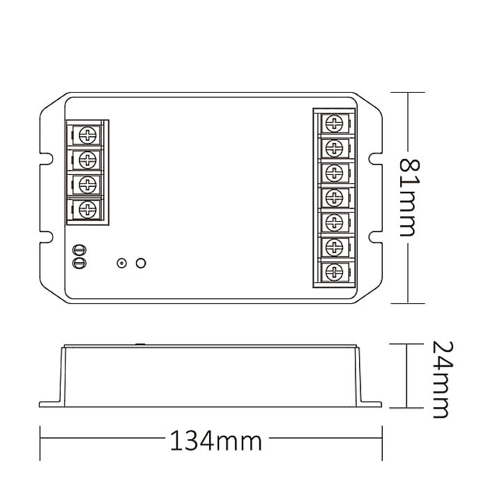 - Wymiary sterownika (dł. x szer. x wys.): 134mm x 81mm x 24mm.