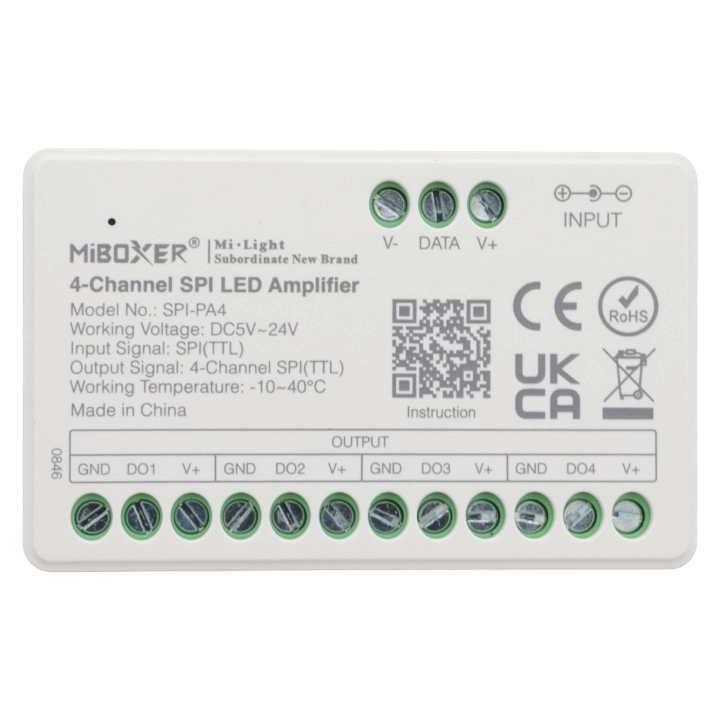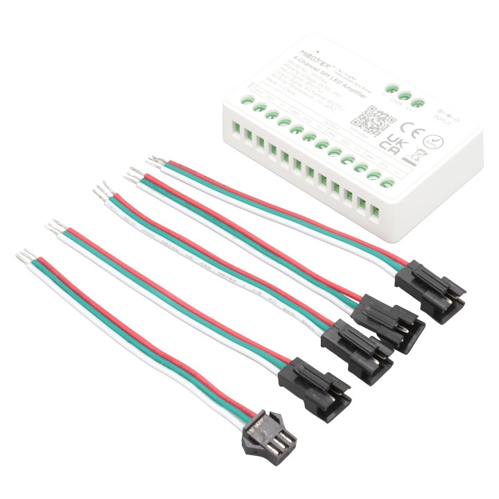 Uniwersalny wzmacniacz do cyfrowych LED MiBoxer SPI-PA4 działa z szeroką gamą sterowników do LEDów cyfrowych dostępnych na rynku.